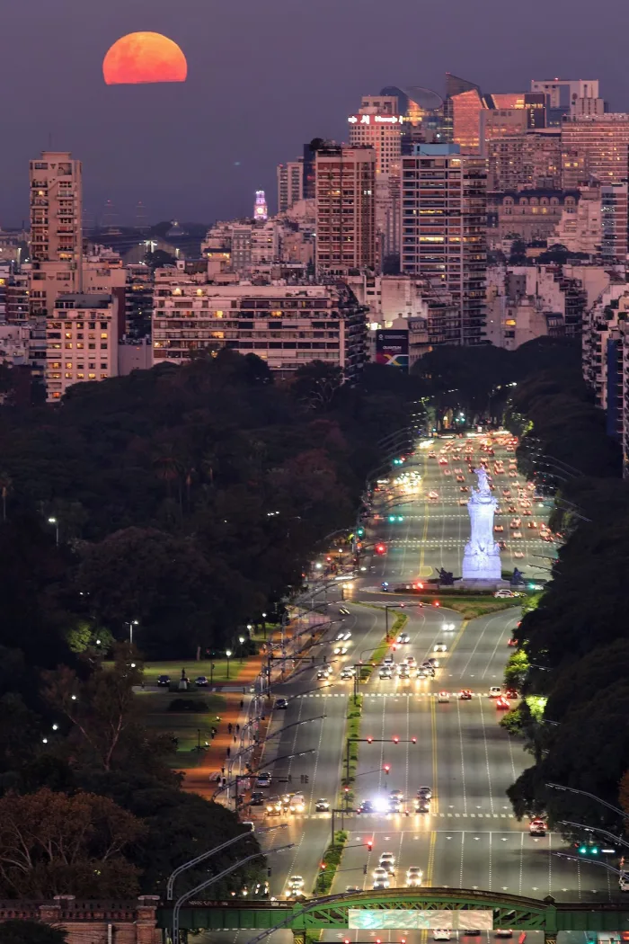 Luna roja 2026: Argentina será uno de los mejores lugares para ver el eclipse | Archivo: el fotógrafo Jonas Papier captó la "luna roja" sobre la Ciudad de Buenos Aires en mayo de 2021.